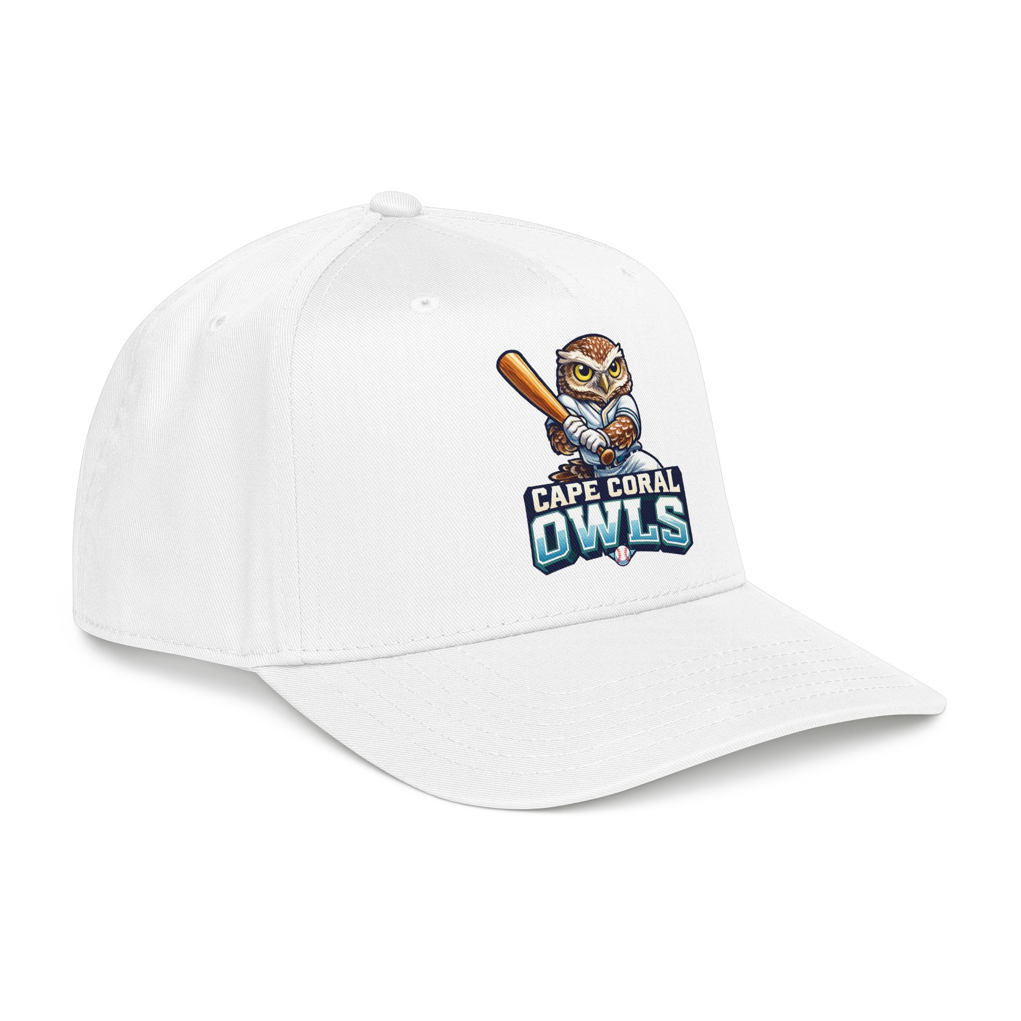 This mid-profile baseball cap brings a crisp, sporty look to everyday wear. The structured 5-panel shape and seamless front panel showcase the team-style owl logo with clarity — a bold emblem that reads well from a distance. Built from a sturdy 65% polyester / 35% cotton blend, the cap holds its shape while remaining comfortable. A matching fabric undervisor and sweatband give a finished, cohesive appearance, and the premium plastic snap closure lets you dial in the fit. Small details like six sewn eyelets and neat decoration via DTF keep the craftsmanship visible. Wear it to games, weekend outings, or casual runs into town — it reads like team pride and clean design rolled into one.