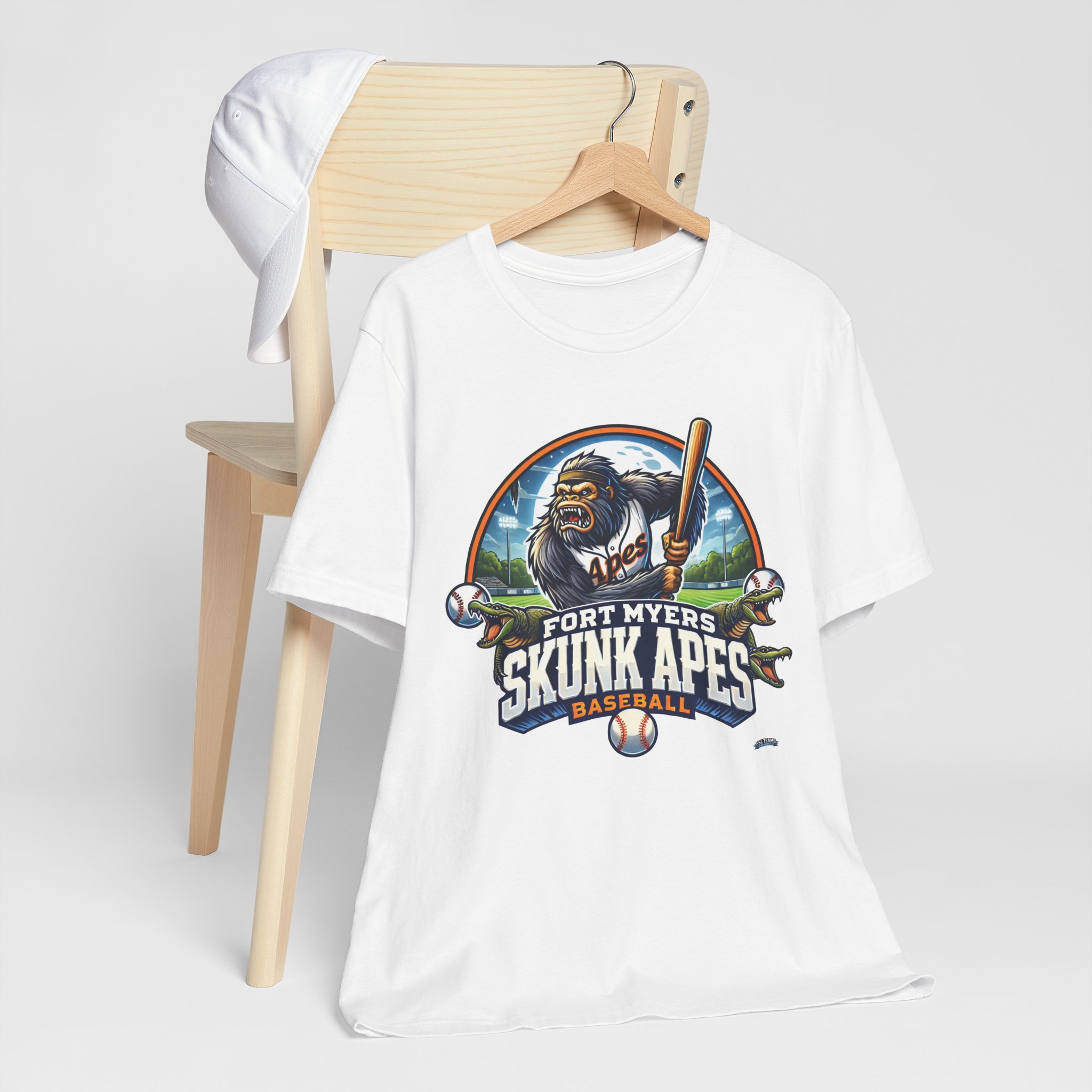 A lightweight, breathable jersey tee with a bold, vintage-style baseball graphic that reads “Fort Myers Skunk Apes.” The shirt feels like game-day nostalgia—soft Airlume combed cotton, a neat crew neckline, and side seams that keep its shape through seasons of wear. The detailed front artwork pops with vibrant DTF/DTG printing for clear lines and rich color, while the tear-away label and stabilized shoulders keep comfort front and center. Wear it to the ballpark, a backyard barbecue, or on weekend drives when you want a sporty, local-pride look that’s easy to layer and even easier to live in.